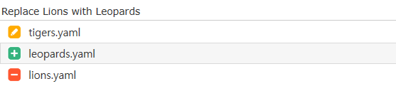 문제는 바로 leopards.yaml 파일에 있다. revert 하고자 하는 파일에서 leopards를 생성하므로, revert를 사용하면 leopards는 삭제되어야 한다. 그러나 위 그림의 커밋에서는 해당 파일을 수정하므로 충돌(conflict)가 발생하는 것이다.